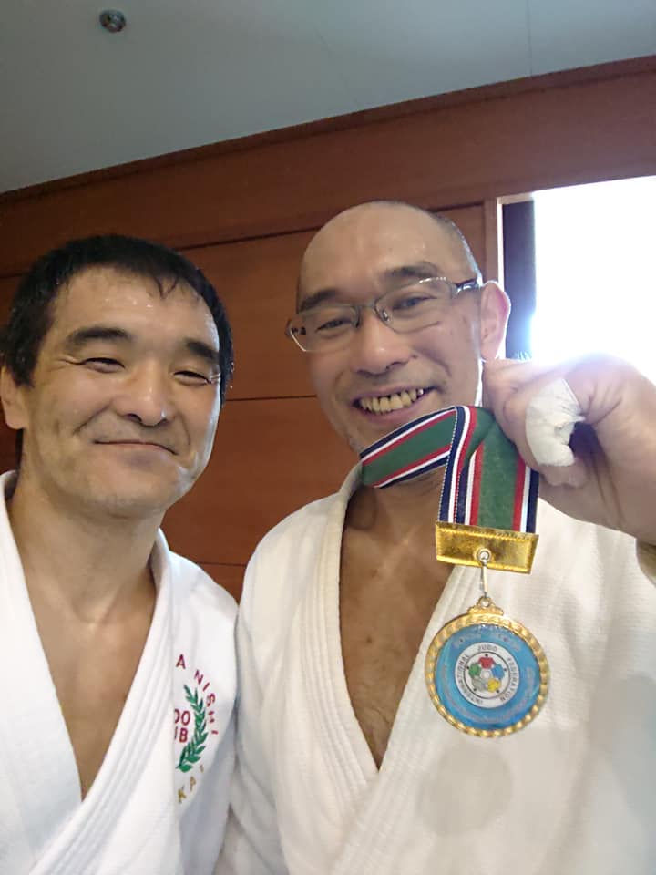日本ベテランズ国際柔道大会(福井県福井市)は、1回戦巴投げで一本勝ち、準決勝出足払いで一本勝ち、決勝巴投げで技ありを奪い優勢勝ち。