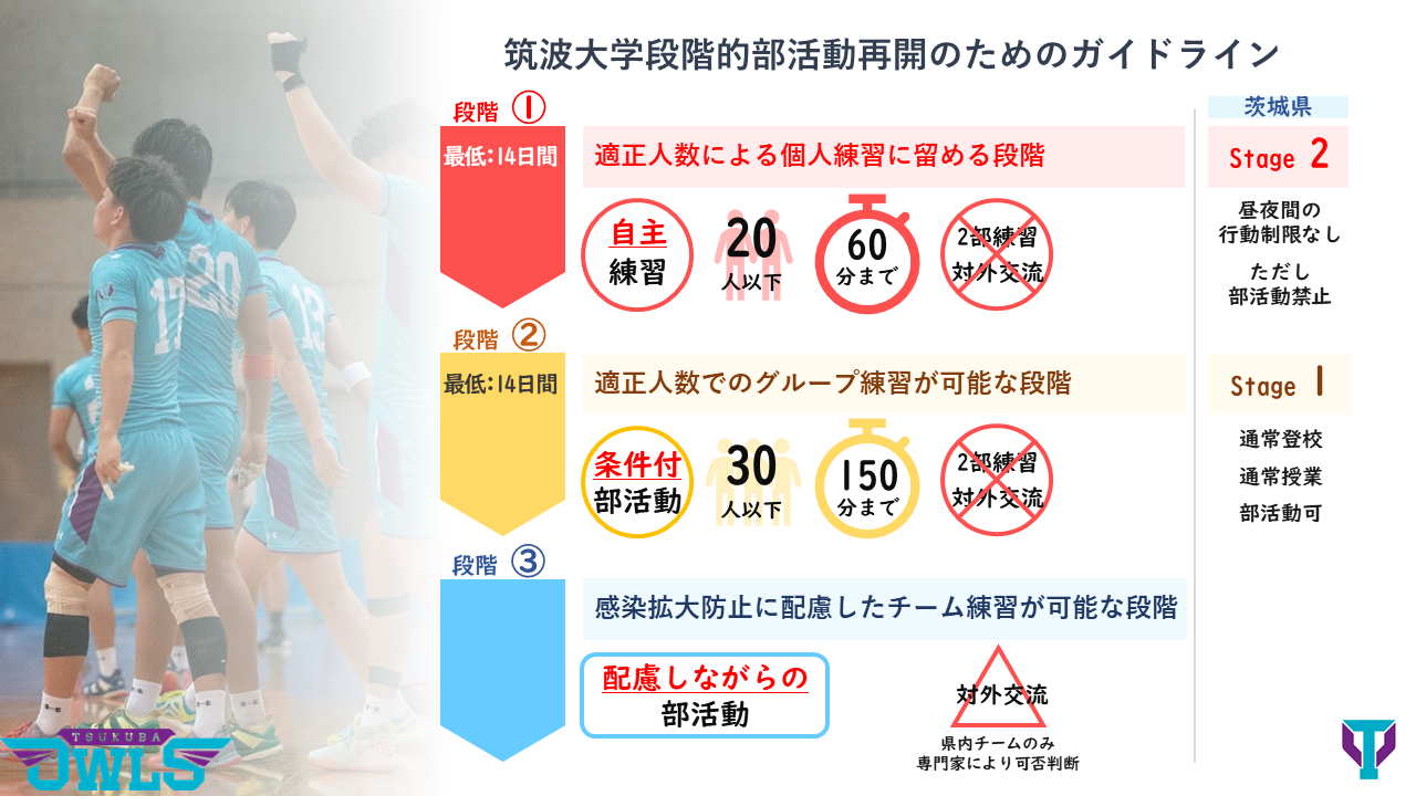 筑波大からも部活動再開に向けたガイドラインが発表されていました。