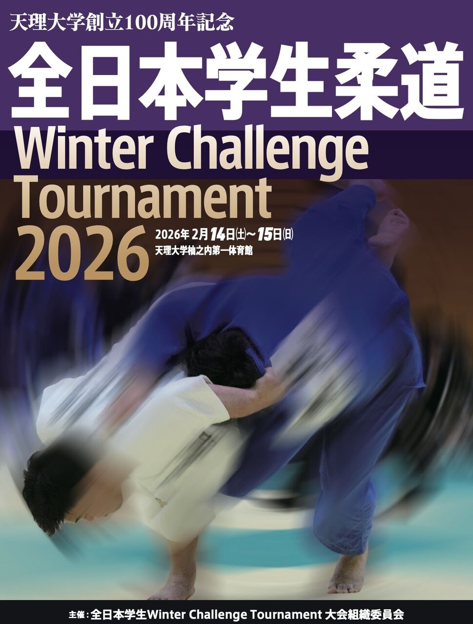 全日本学生柔道Winter Challenge Tournament 2026が、2月14日~15日に天理大学杣之内第一体育館にて開催されます。